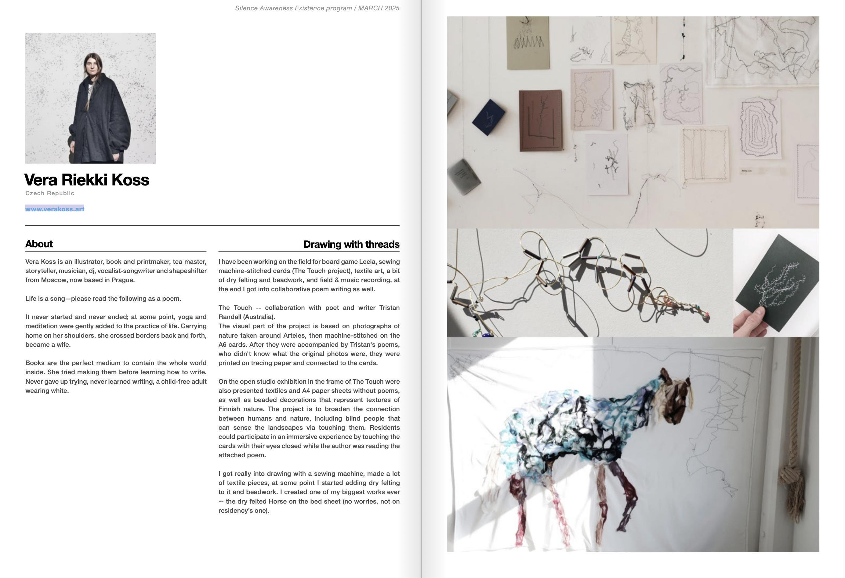 During a month residency I have been working on several projects: Leela board game, The Touch, Self-portraits (textiles), the Horse using sewing machine, dry felting, beadwork, and drawing.